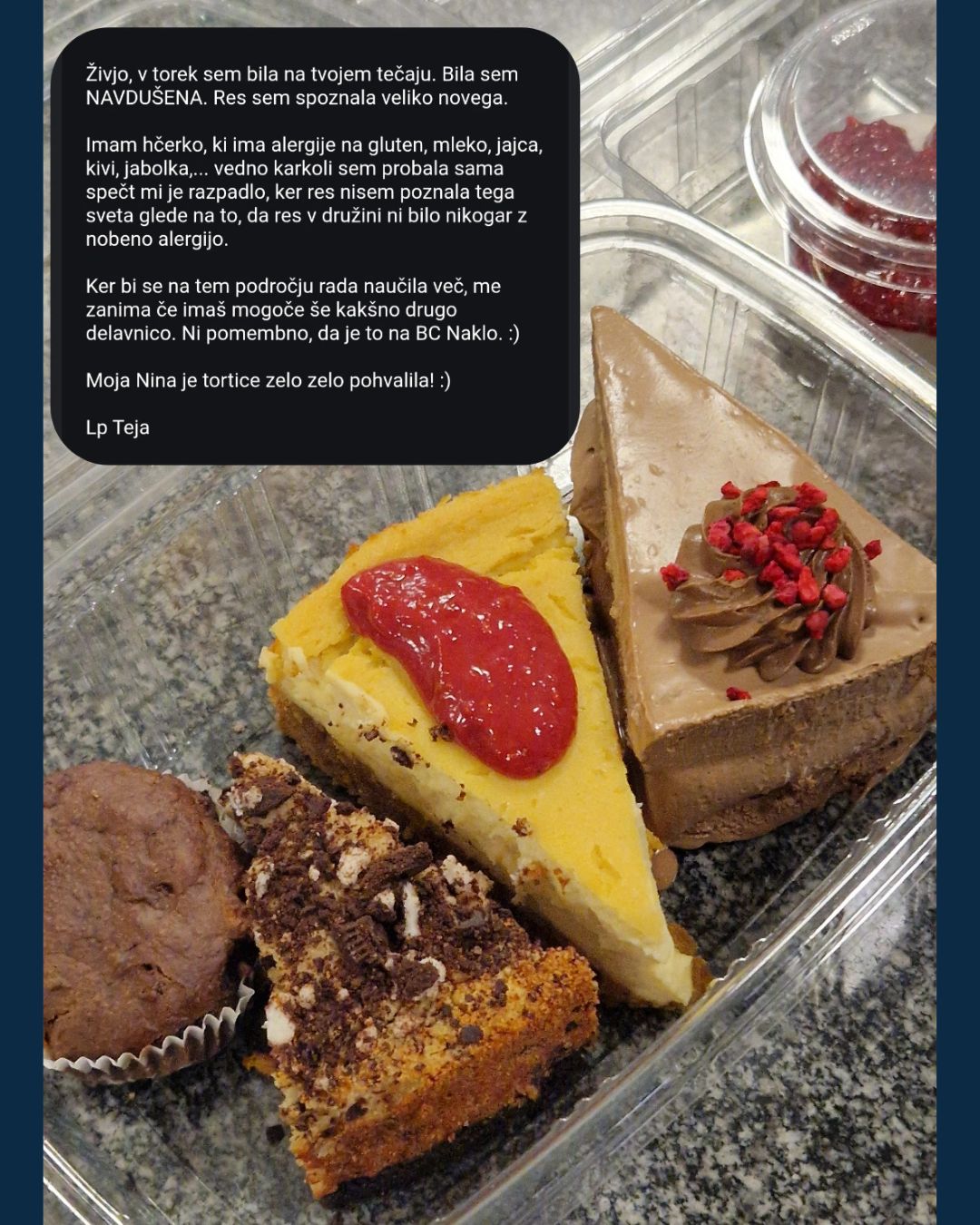 👉 brownieji, mousse, cheesecake, biskviti in še več
